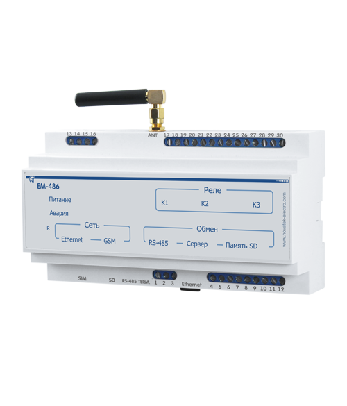 Ключевым преимуществом устройства ЕМ-486 является простота объединения множества объектов в одну систему диспетчеризации. Это даёт возможность консолидировать данные в единый отчёт.