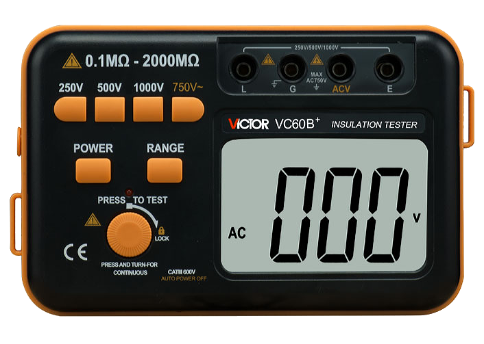 Данный портативный прибор имеет элегантный вид и превосходное качество изготовления, надежен и стабилен в работе, а наличие шейного ремня освобождает для работы обе руки. Victor VC60B+ прекрасно подходит для проверки сопротивления изоляции в электротехнике, в кабельных хозяйствах, в электрическом и механическом оборудовании, в телекоммуникационном оборудовании и системах поставки электроэнергии.