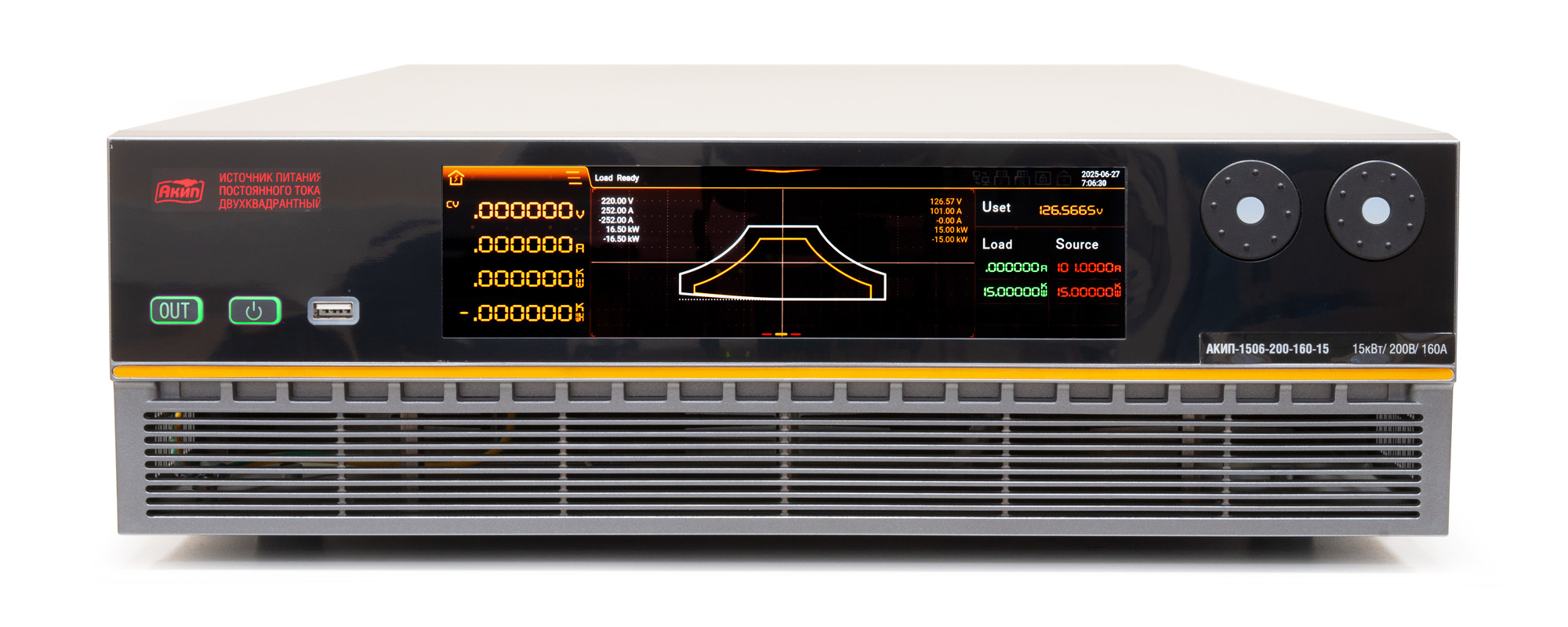 АКИП-1506 — это новое поколение двунаправленных программируемых источников постоянного тока. Этот продукт представляет собой источник энергии с функцией источника питания и электронной нагрузки, автоматической работой в двух квадрантах и способностью поглощать энергию обратной связи от тестируемого оборудования. Широко используется в тестировании инверторов, преобразователей, солнечных панелей, эмуляции батарей / конденсаторов и др.