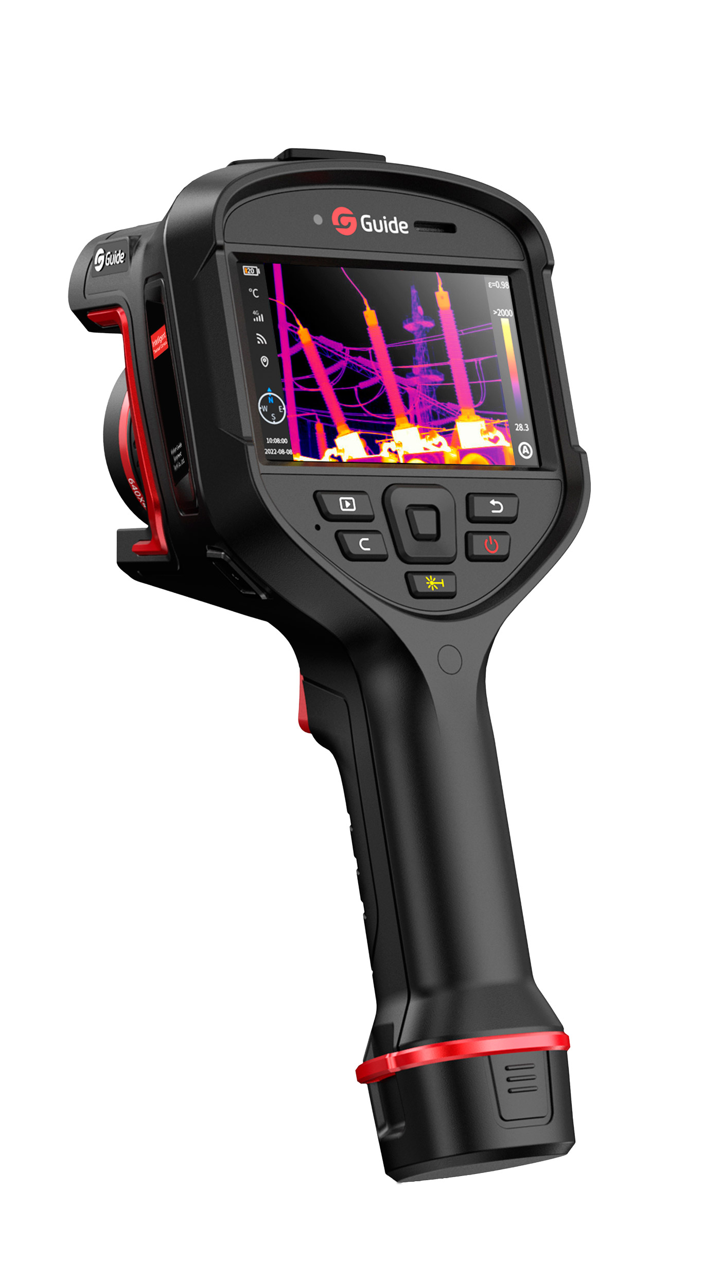 Интеллектуальная тепловизионная камера Guide H2 для применения в промышленности, помогает находить неисправности оборудования и перегрев механизмов. Тепловизор оснащён детектором с разрешением матрицы 256 x 192 пикселей, частота кадров 30 Гц, картинка чёткая и плавная. Диапазон измерения температуры -40...+150°C, 0...+650°C с автоматическим переключением режимов работы. Тепловизор оснащён 5 мегапиксельной камерой, есть функция наложения изображений (запатентованная технология MIFusion+) – фото с камеры видимого спектра накладываются на термограмму, в результате получается более чёткая термограмма за счёт автоматической прорисовки контуров объектов. В комплекте с камерой два аккумулятора, зарядки хватает примерно на 5 часов работы.