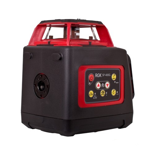 Ротационный нивелир RGK SP-400G оснащён зелёным лазером. Зелёный луч ярче и лучше заметен при ярком свете, а также позволяет использовать два уровня одновременно, отличая плоскости по цвету. RGK SP-400G — один из самых доступных зелёных ротационных нивелиров в своём классе.