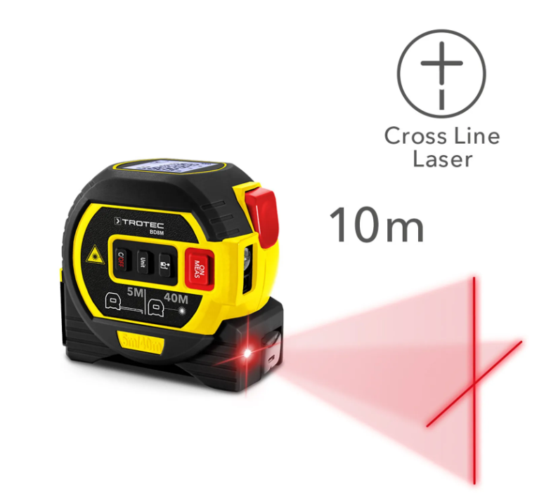 Компактное многофункциональное измерительное устройство Trotec BD8M сочетает в себе функциональность трех полезных измерительных инструментов (лазерного дальномера, лазера перекрестия, рулетки) и поэтому рекомендуется в качестве обязательного оборудования как амбициозным любителям DIY, так и коммерческим пользователям (например, архитекторам, инженерам, дизайнерам интерьеров, мастерам).
